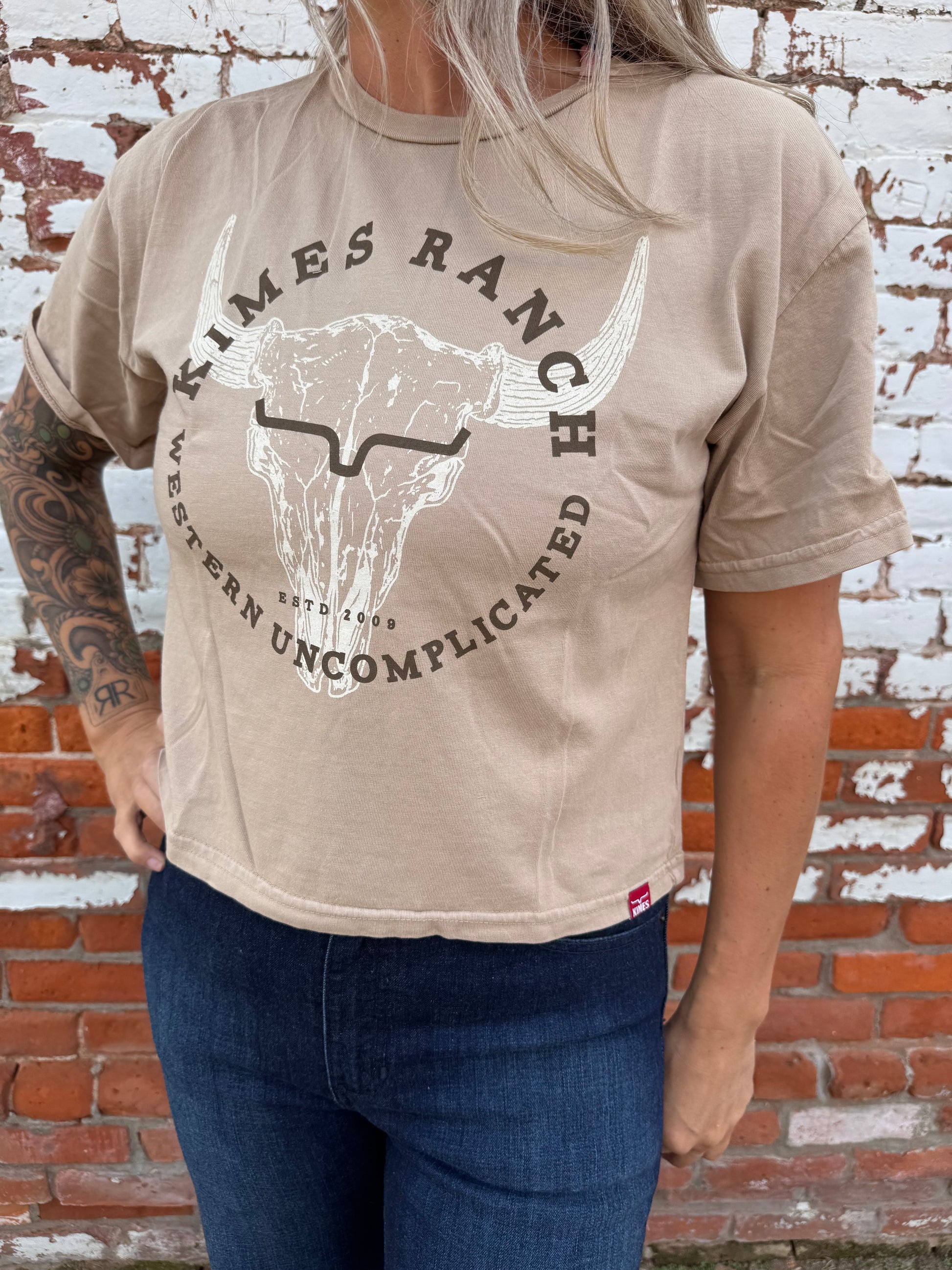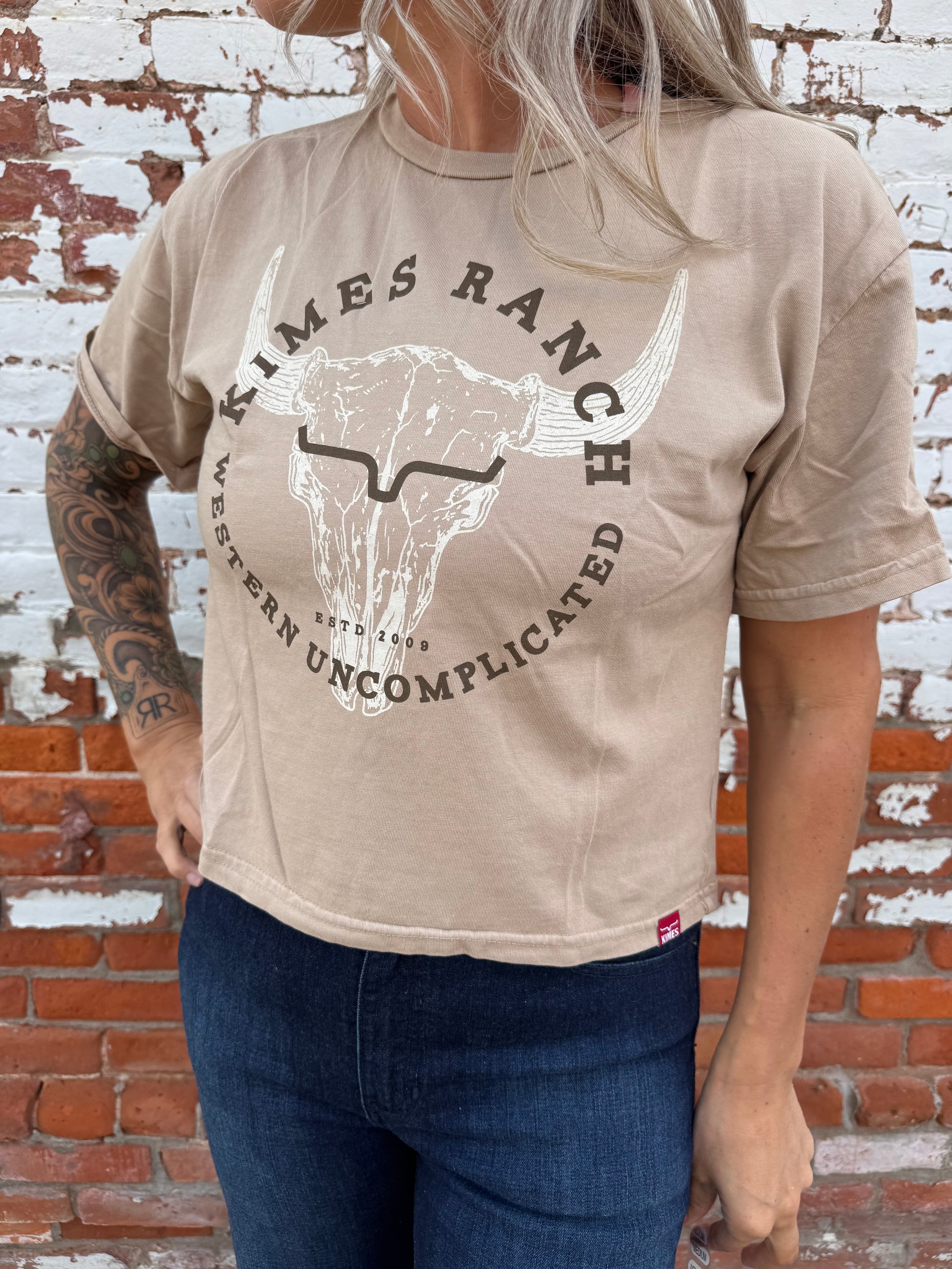 The Bison Skull Cropped Tee brings together classic Western heritage and modern edge. Showcasing a vintage-inspired bison skull graphic layered with the signature Kimes Ranch logo, it delivers bold desert energy in a fresh, contemporary cut. Made from 100% ring-spun cotton, this tee feels soft, breathable, and effortlessly comfortable—perfect for concerts, festivals, or easygoing sunny days.
