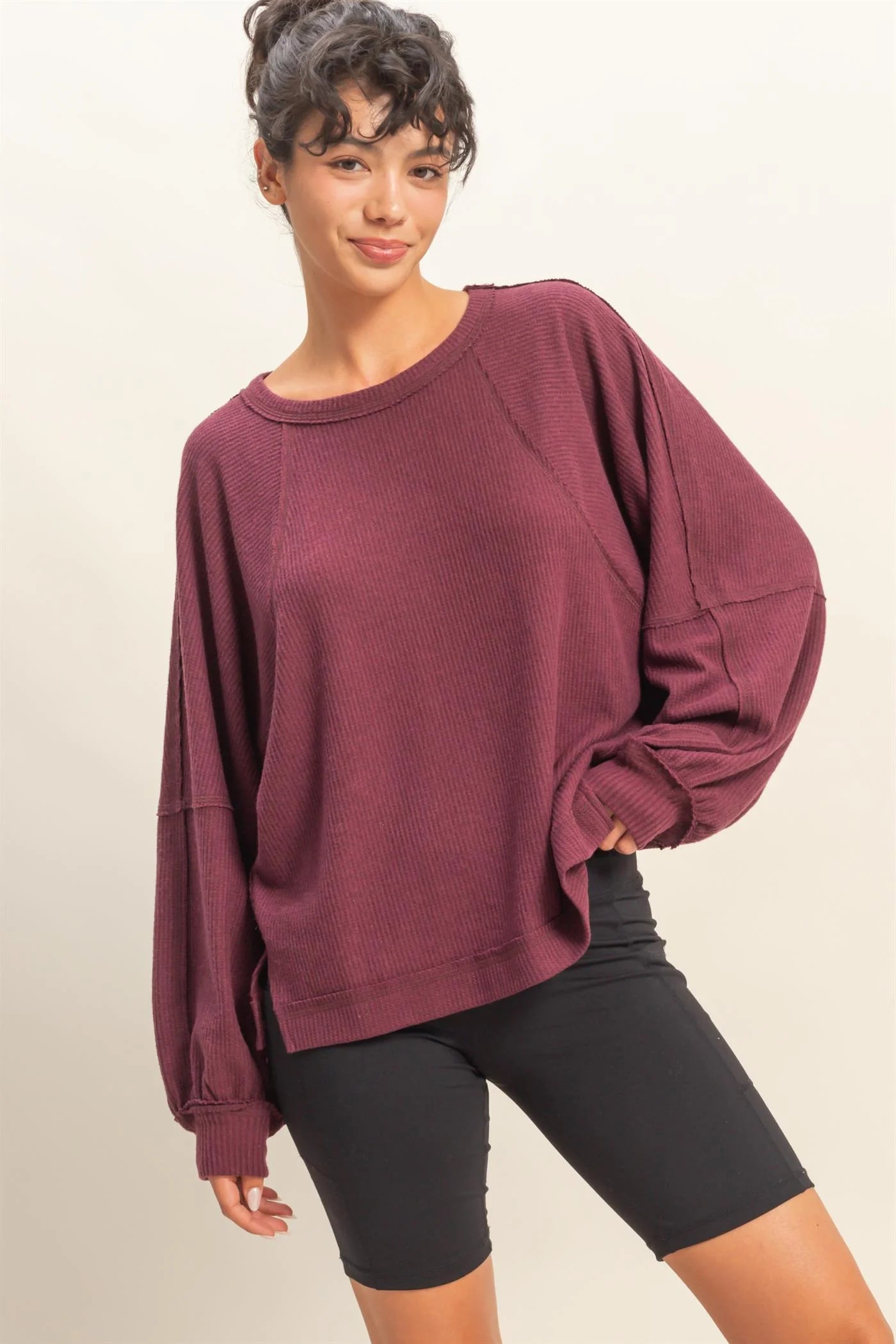 BRUSHED LONG SLEEEVE WAFFLE TOP