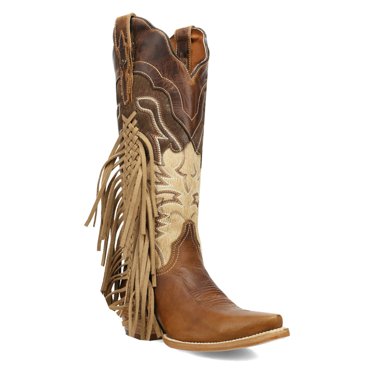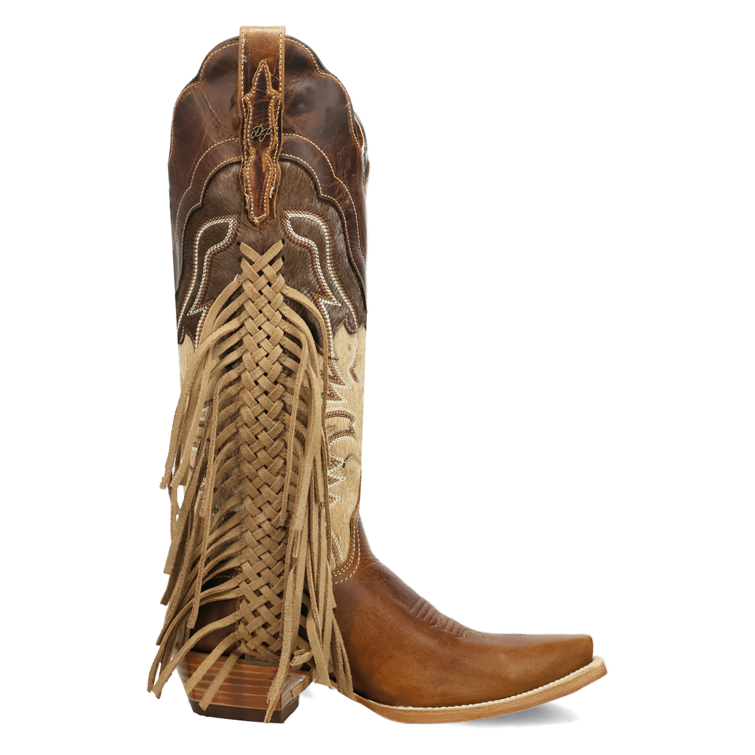 Make a bold entrance with these show-stopping cowgirl boots that are equal parts fierce and feminine. Crafted with rich leather and finished with wild side fringe, these boots are ready to take you from country roads to concert nights.