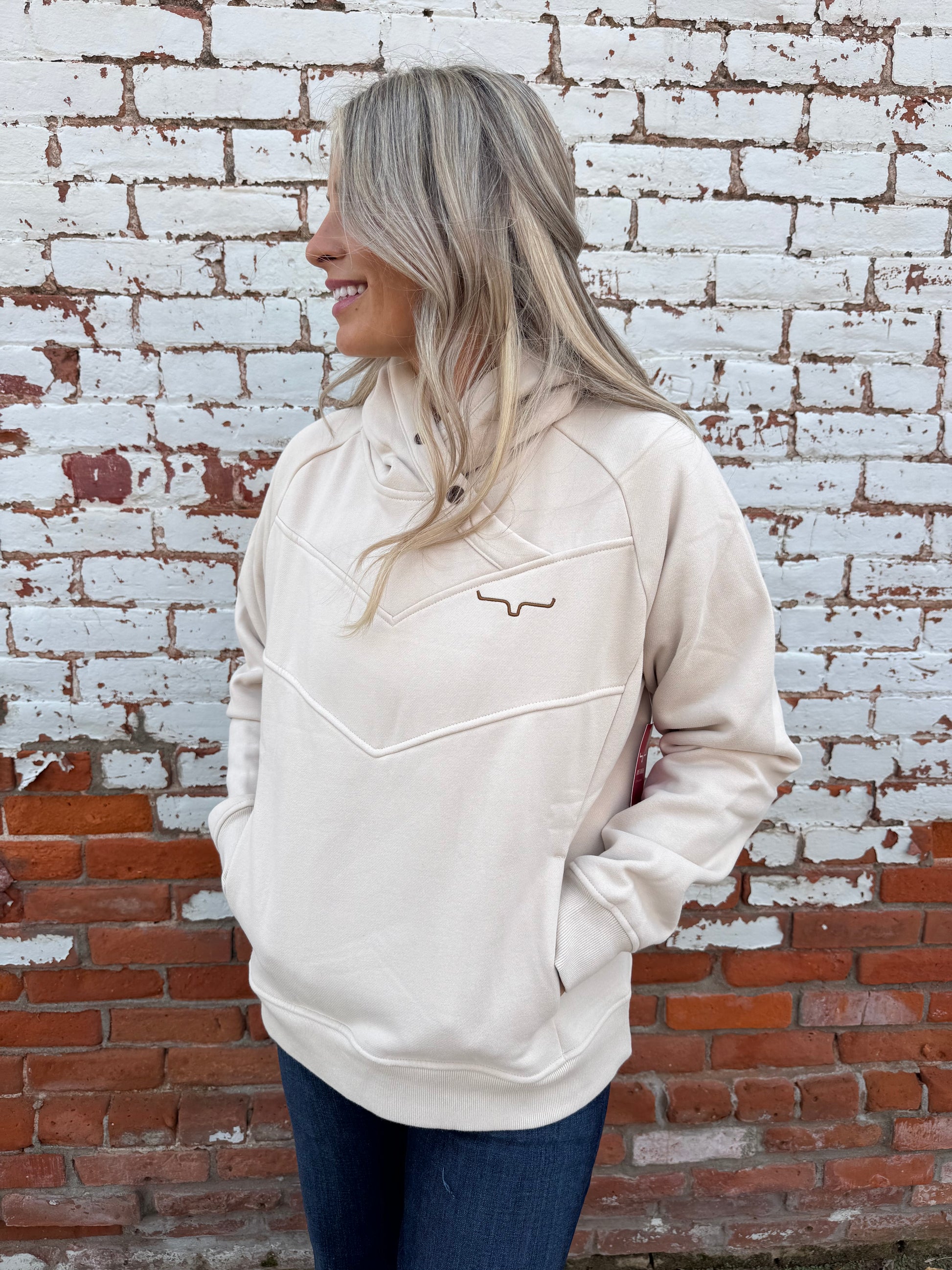 Add a touch of Western charm to your wardrobe with the Ella Hoodie. Designed with exceptional craftsmanship, it showcases distinctive double-stitch detailing and traditional western-style seams that stay true to classic ranch fashion. The crisscross button cowl neckline brings a stylish twist, while the embroidered rope-stitch longhorn logo across the back yoke delivers a bold, signature finish. A smaller longhorn emblem on the front ties it all together, making this a standout essential for any cowgirl. Soft, cozy, and versatile, it’s perfect for layering or wearing solo.