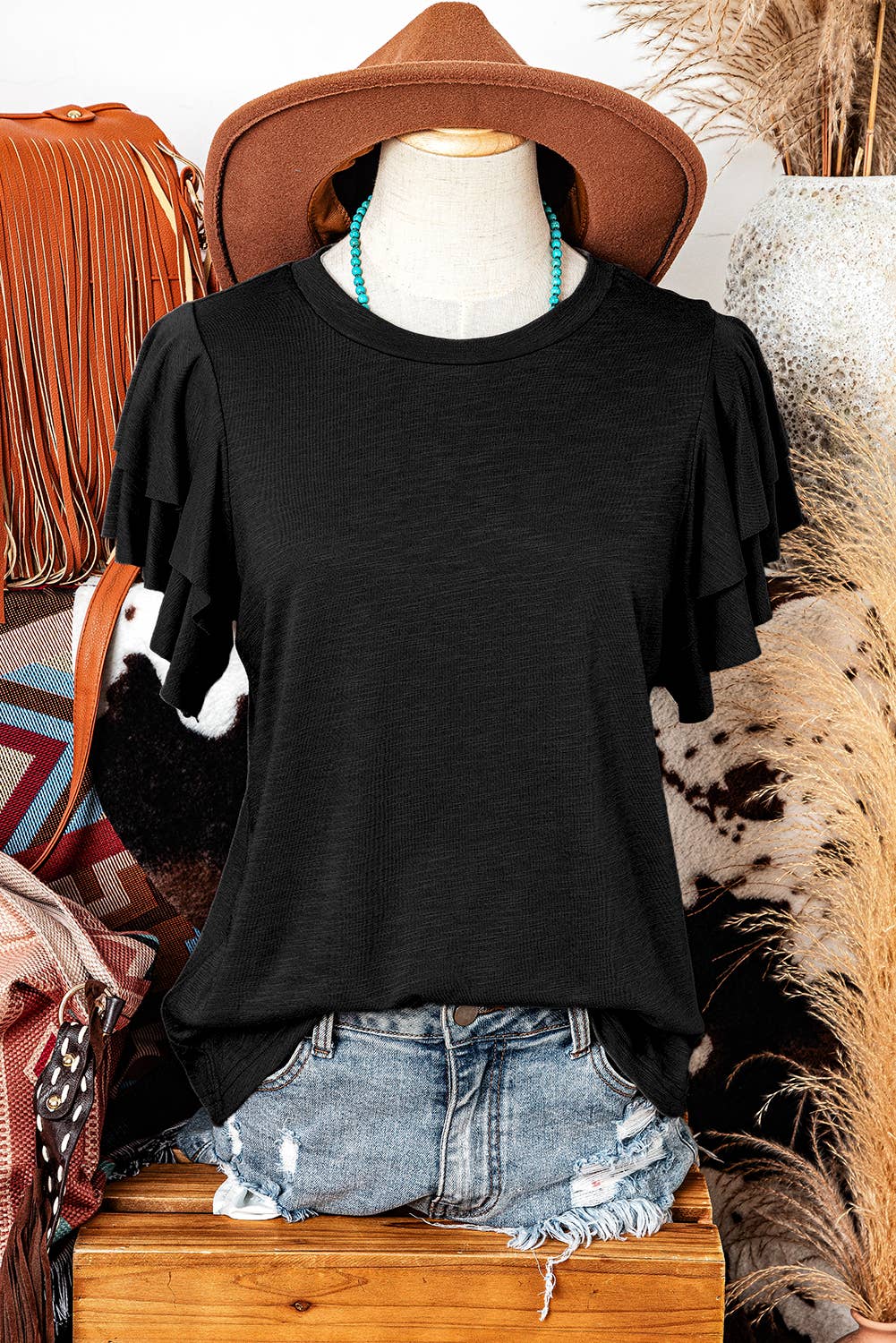 WESTERN LAYERED RUFFLE SLEEVE TOP