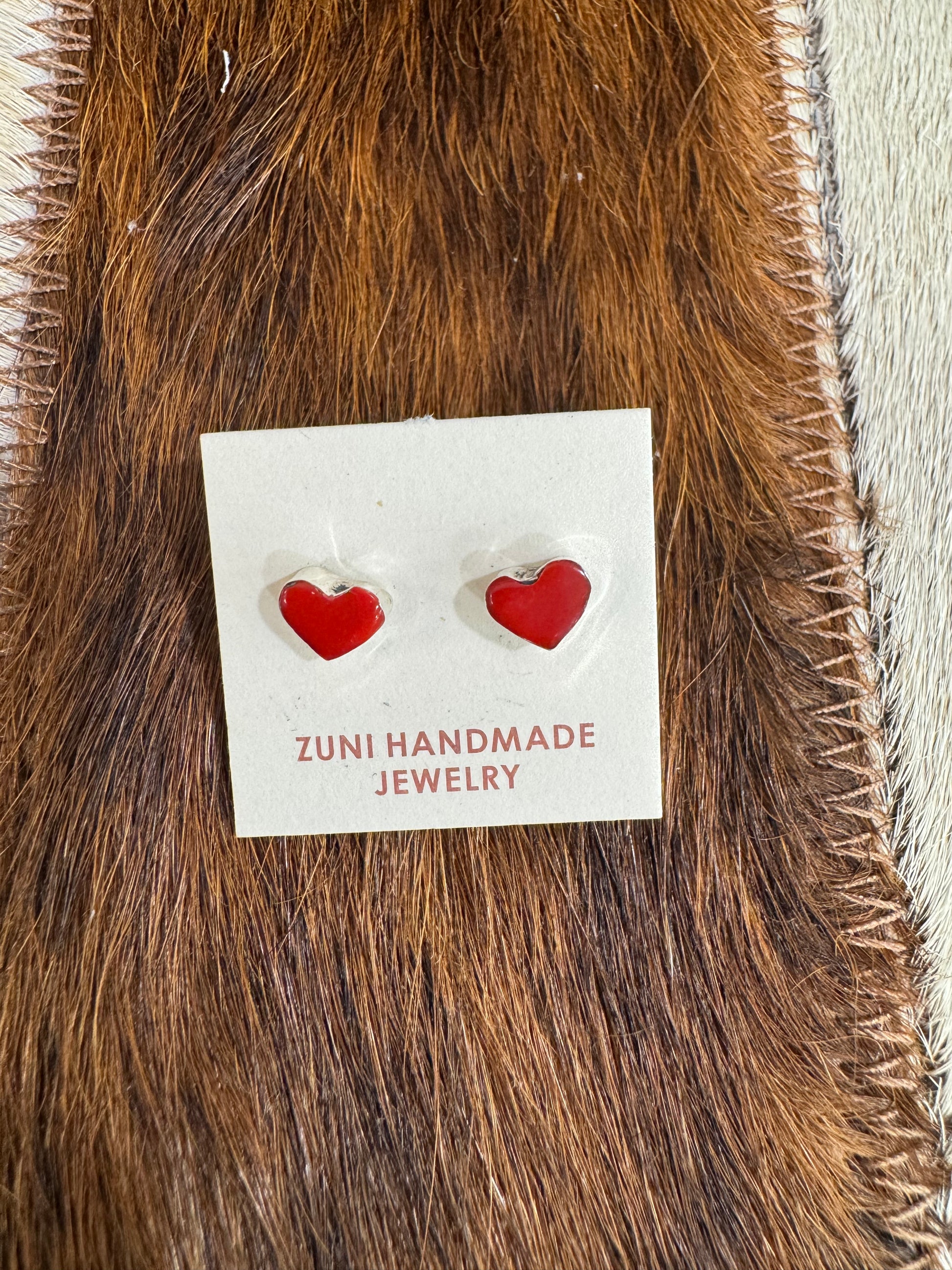 Zuni Handmade, these petite sterling silver earrings feature bold red coral in the shape of sweet little hearts. Simple yet striking, these studs bring a pop of passion and warmth to any look. Whether you're gifting love or wearing it close, these beauties are full of meaning and charm.