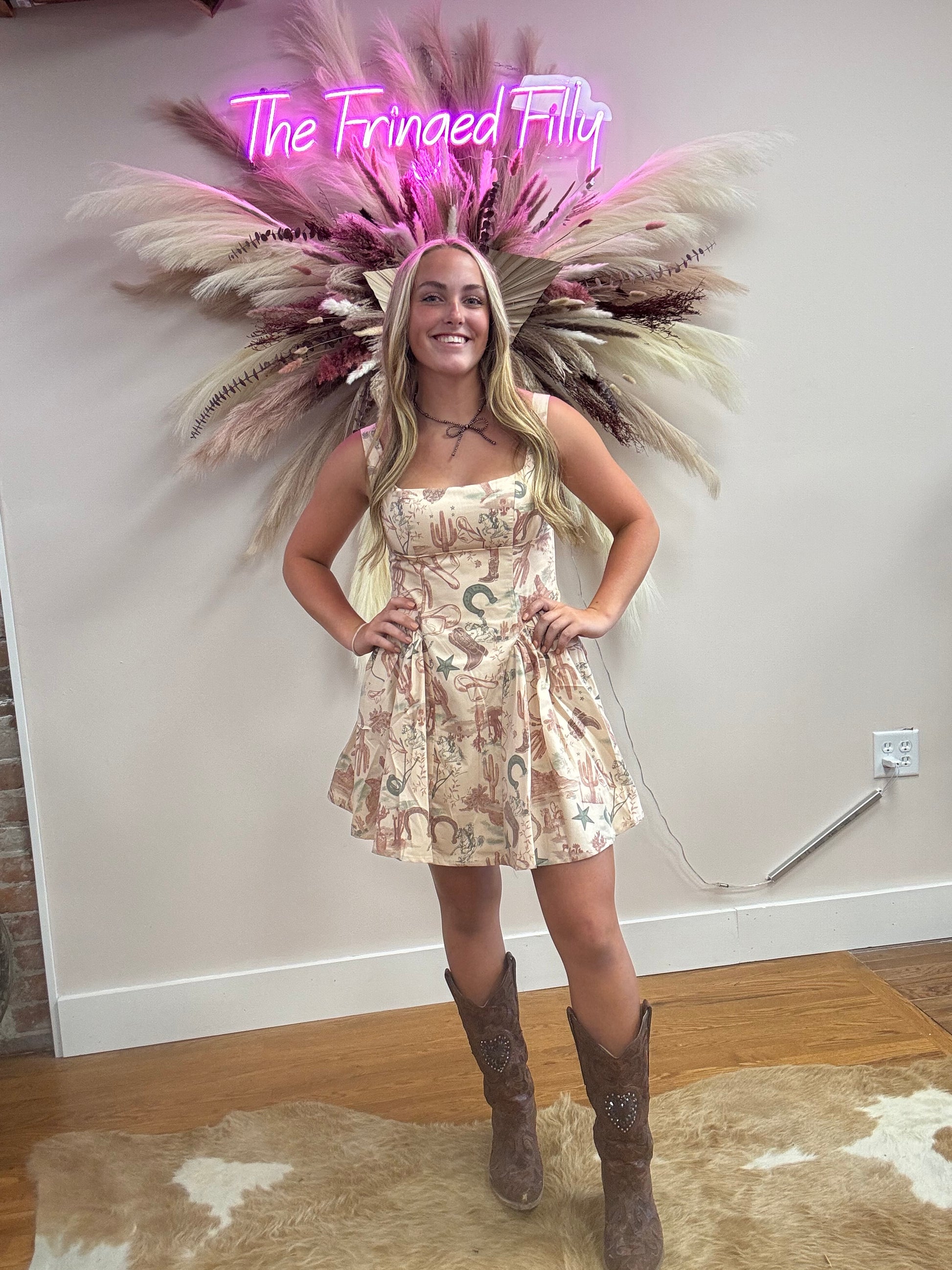 LORETTA WESTERN PRINT MINI DRESS