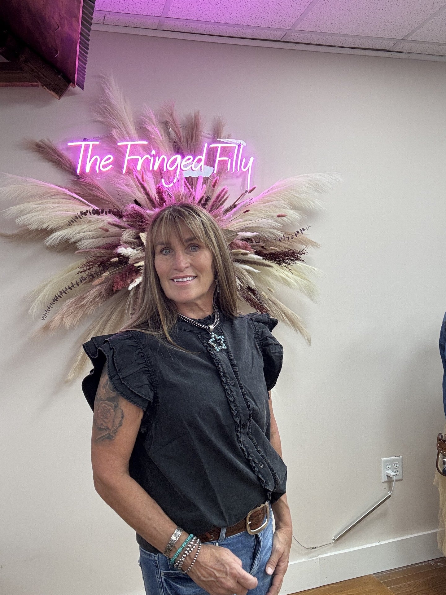 - Frayed trim along the button down front and neckline