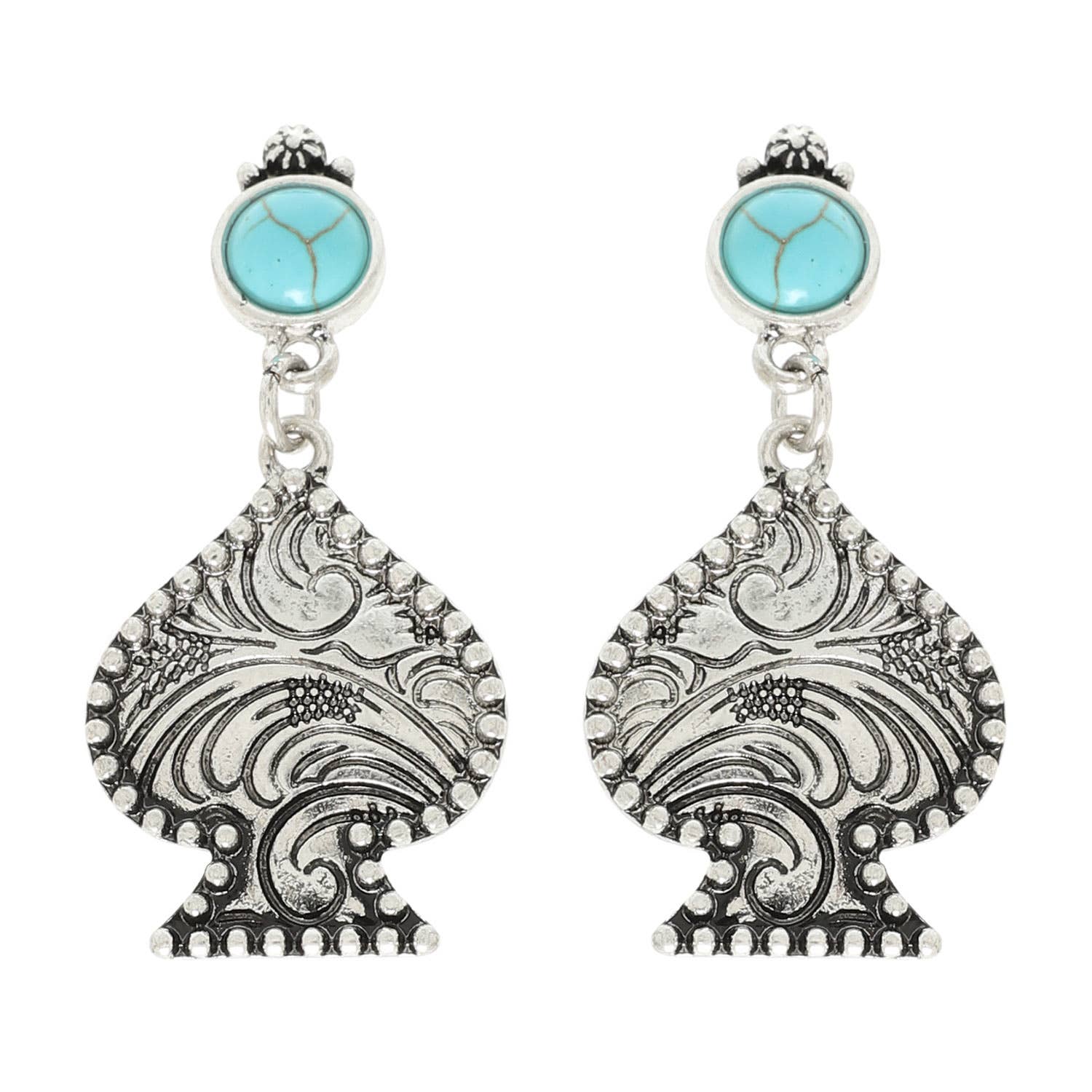 - These Western Engraved Spade Post Dangle Earrings feature stunningly detailed engravings on each spade-shaped earring