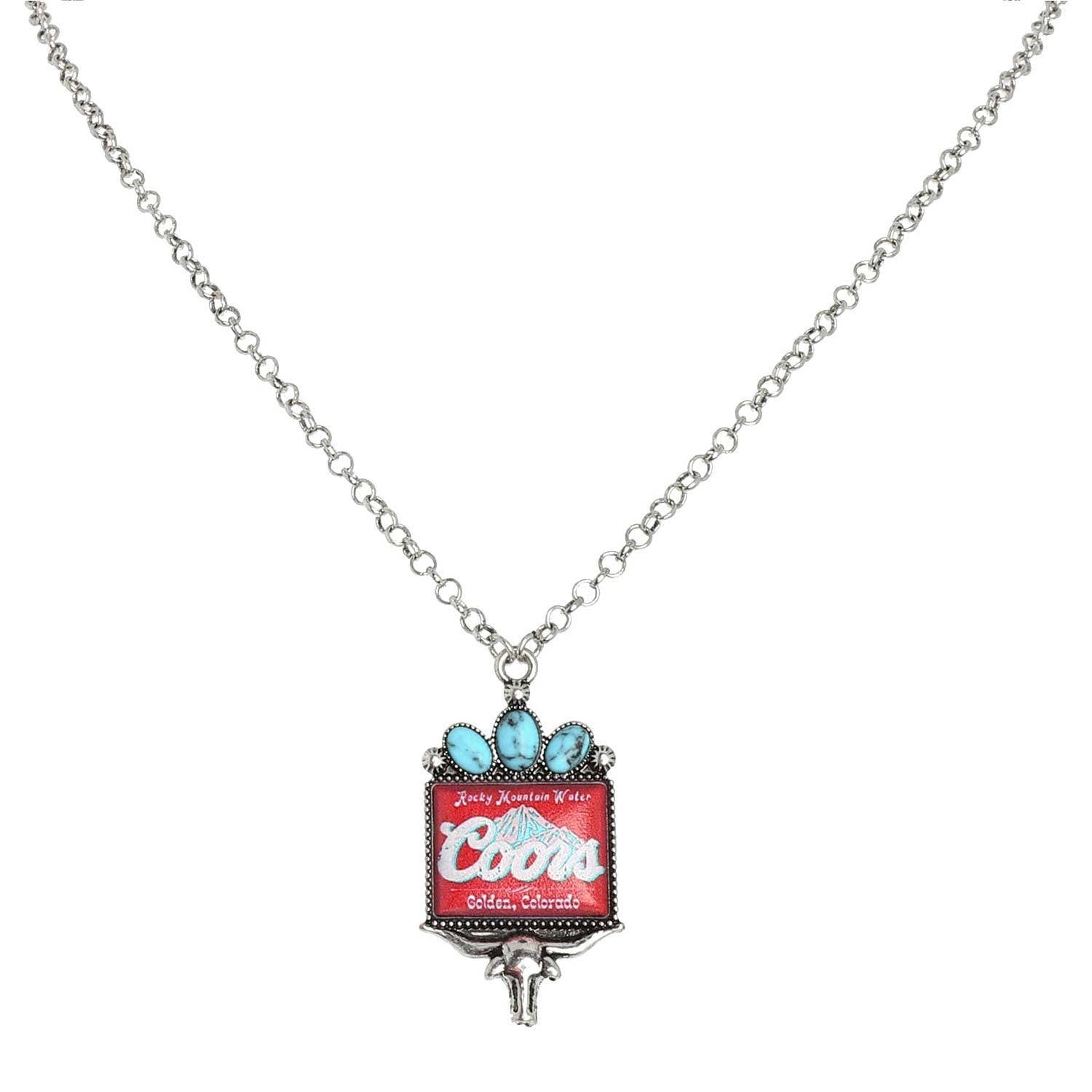 - Add a touch of western charm to your outfit with our Western Longhorn Coors Water Pendant Necklace.